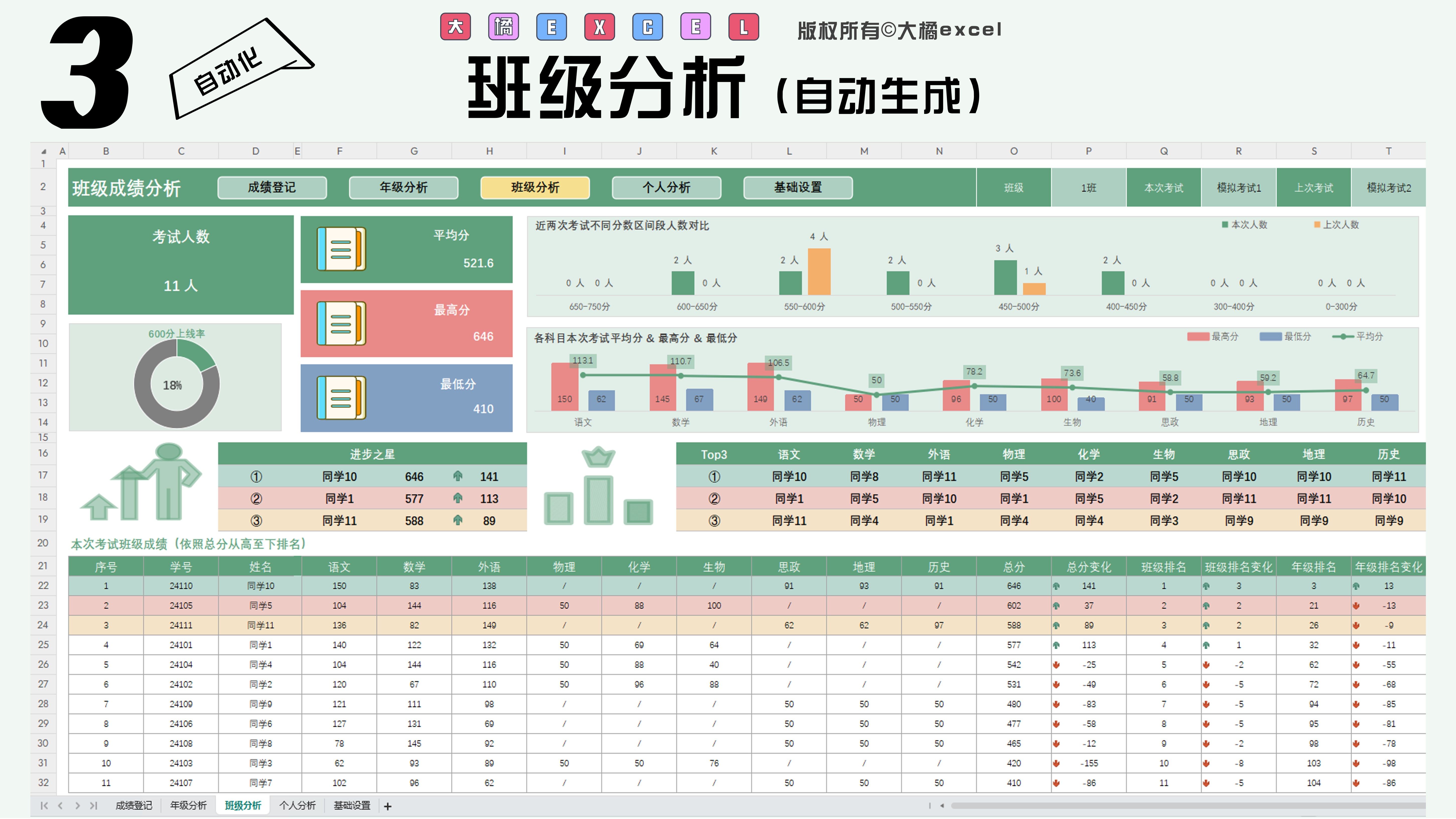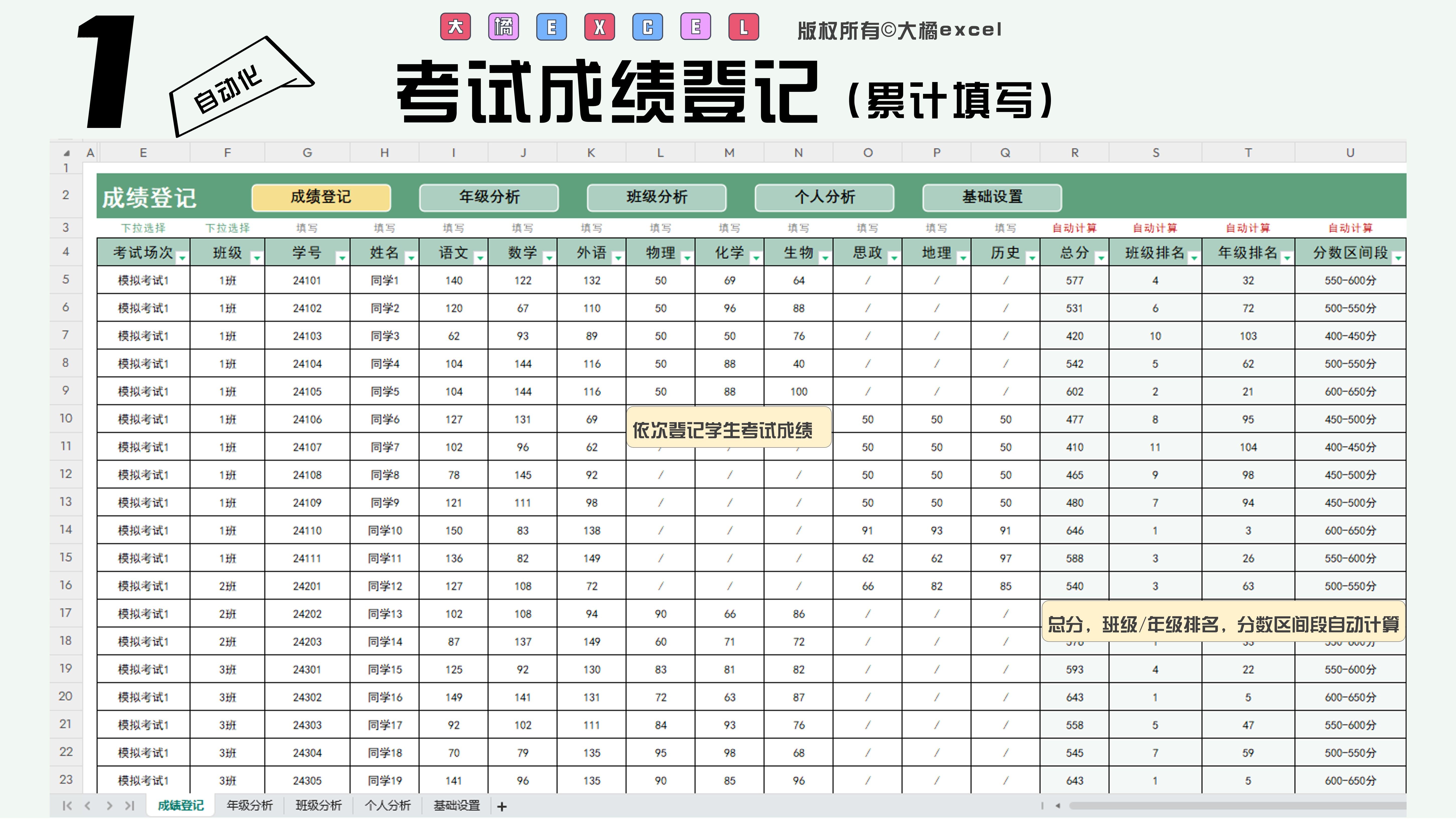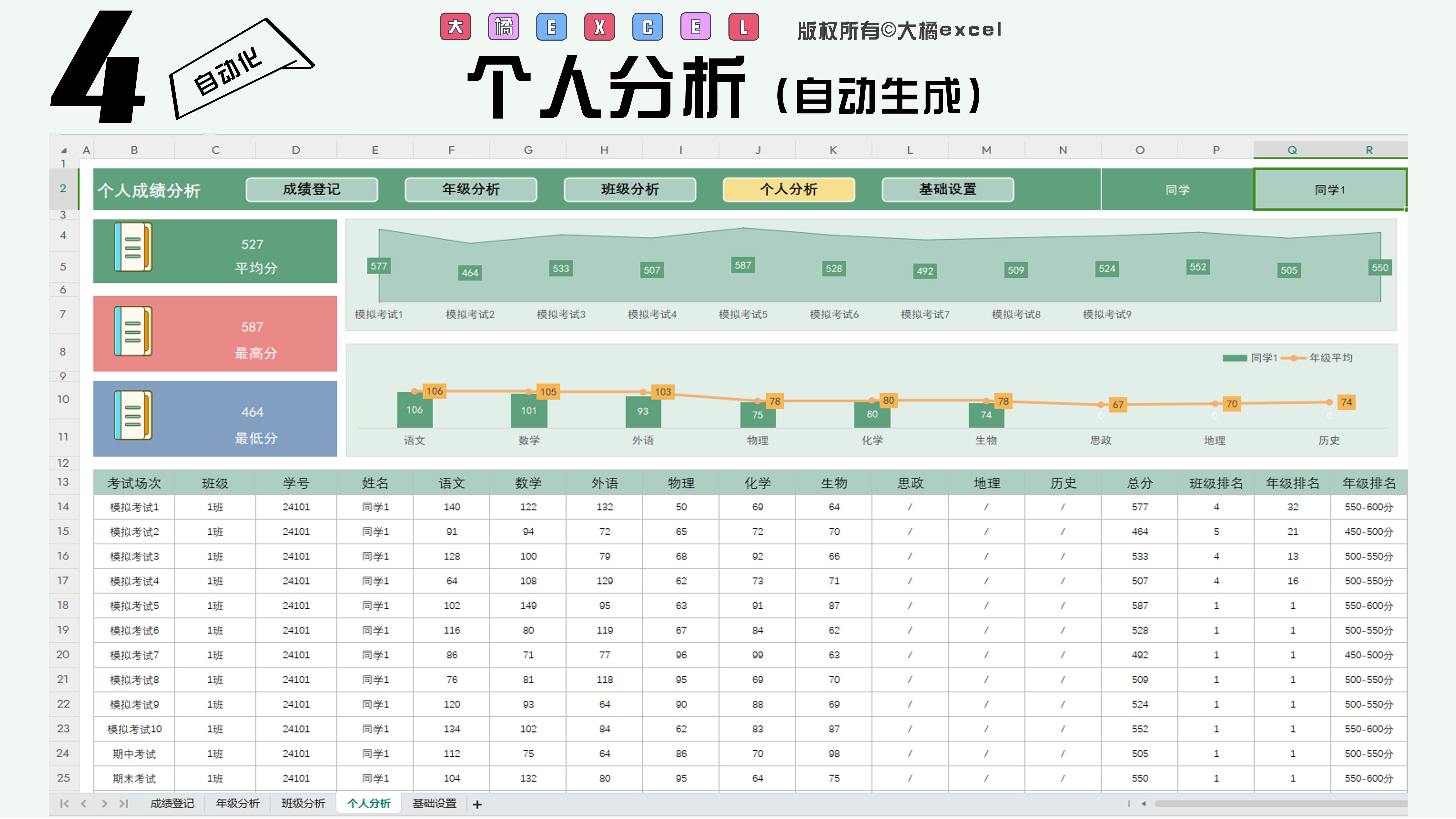成绩表excel表格学生高中期末分析表统计系统查询测试登记表班级