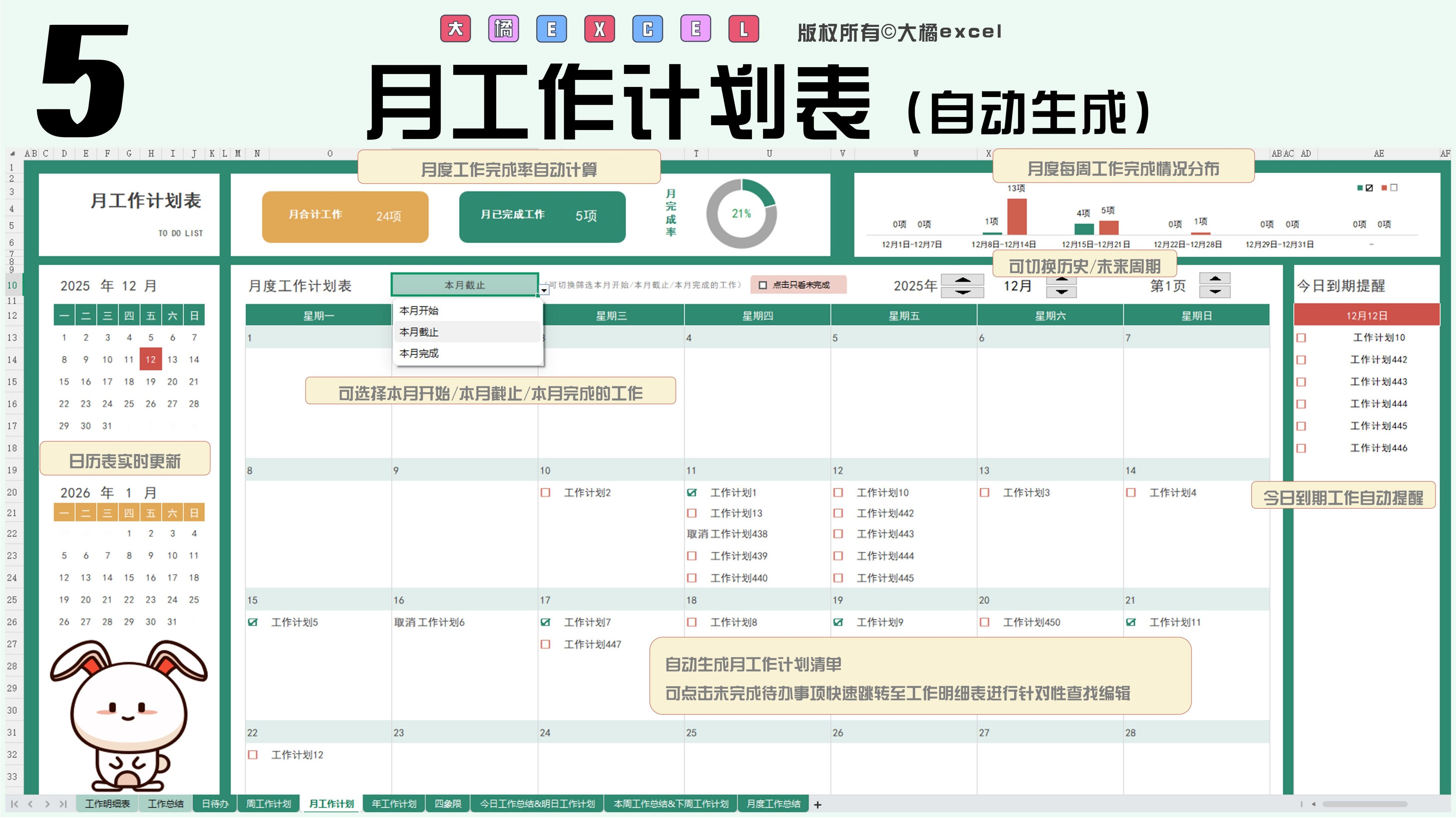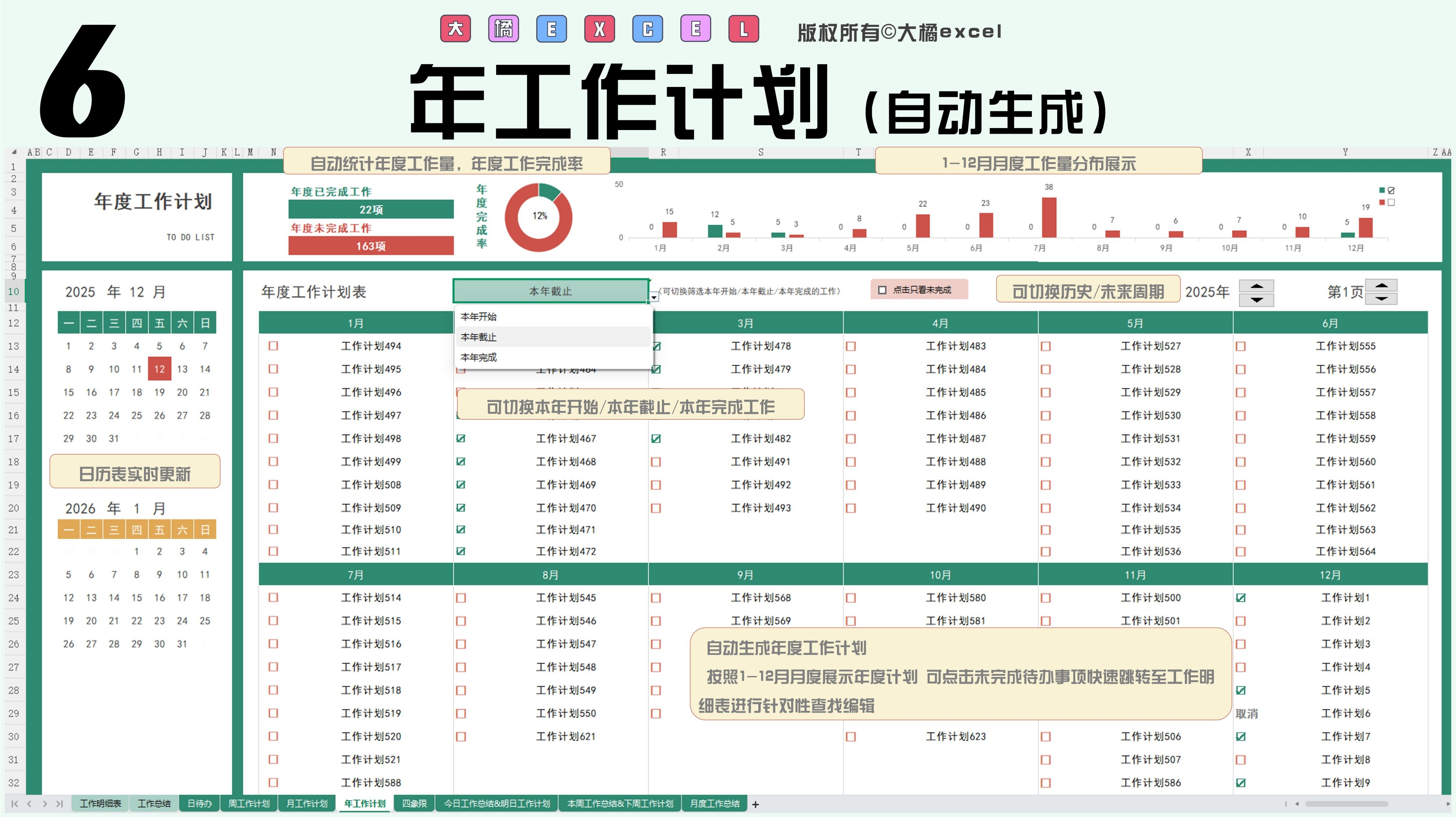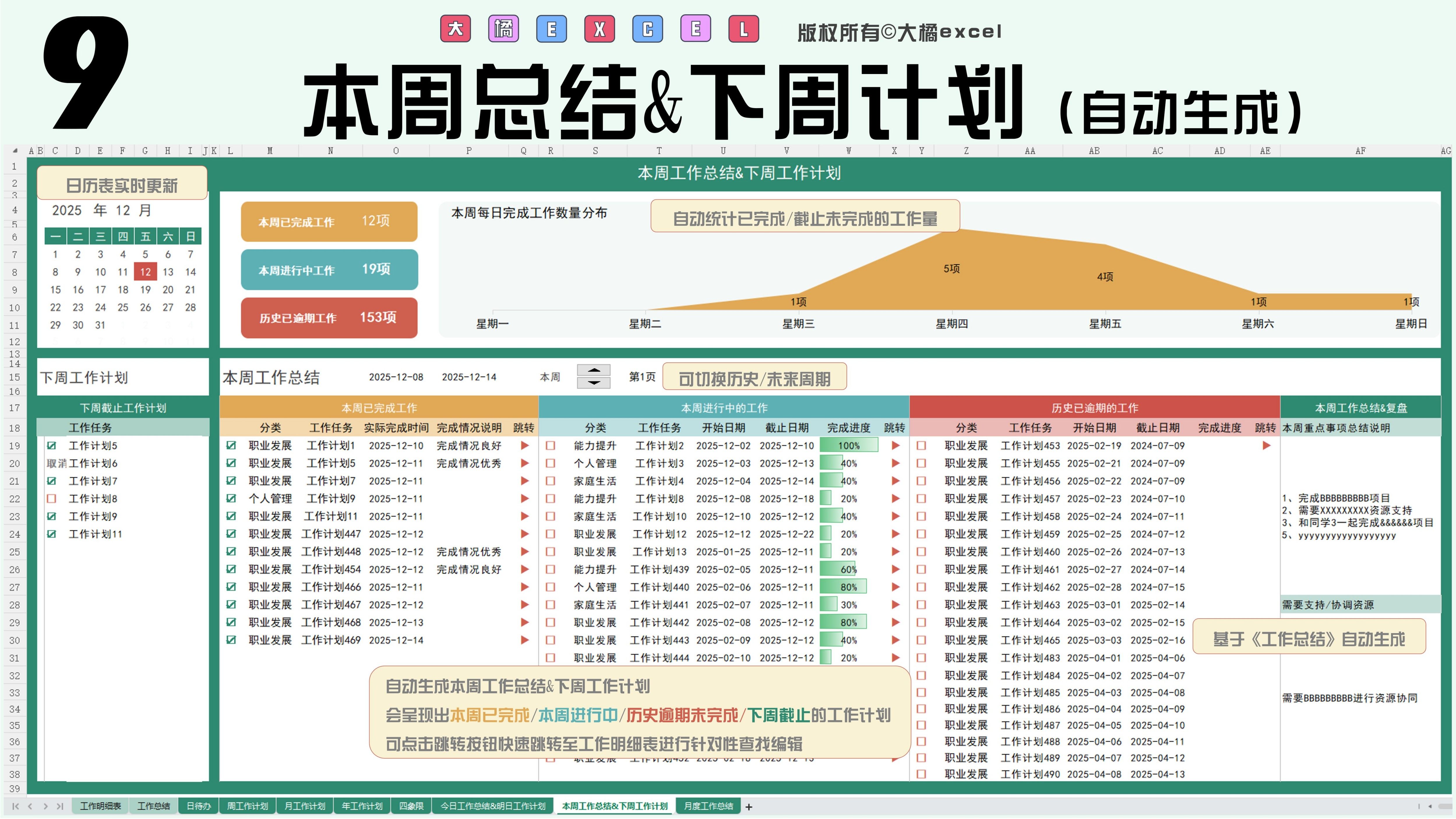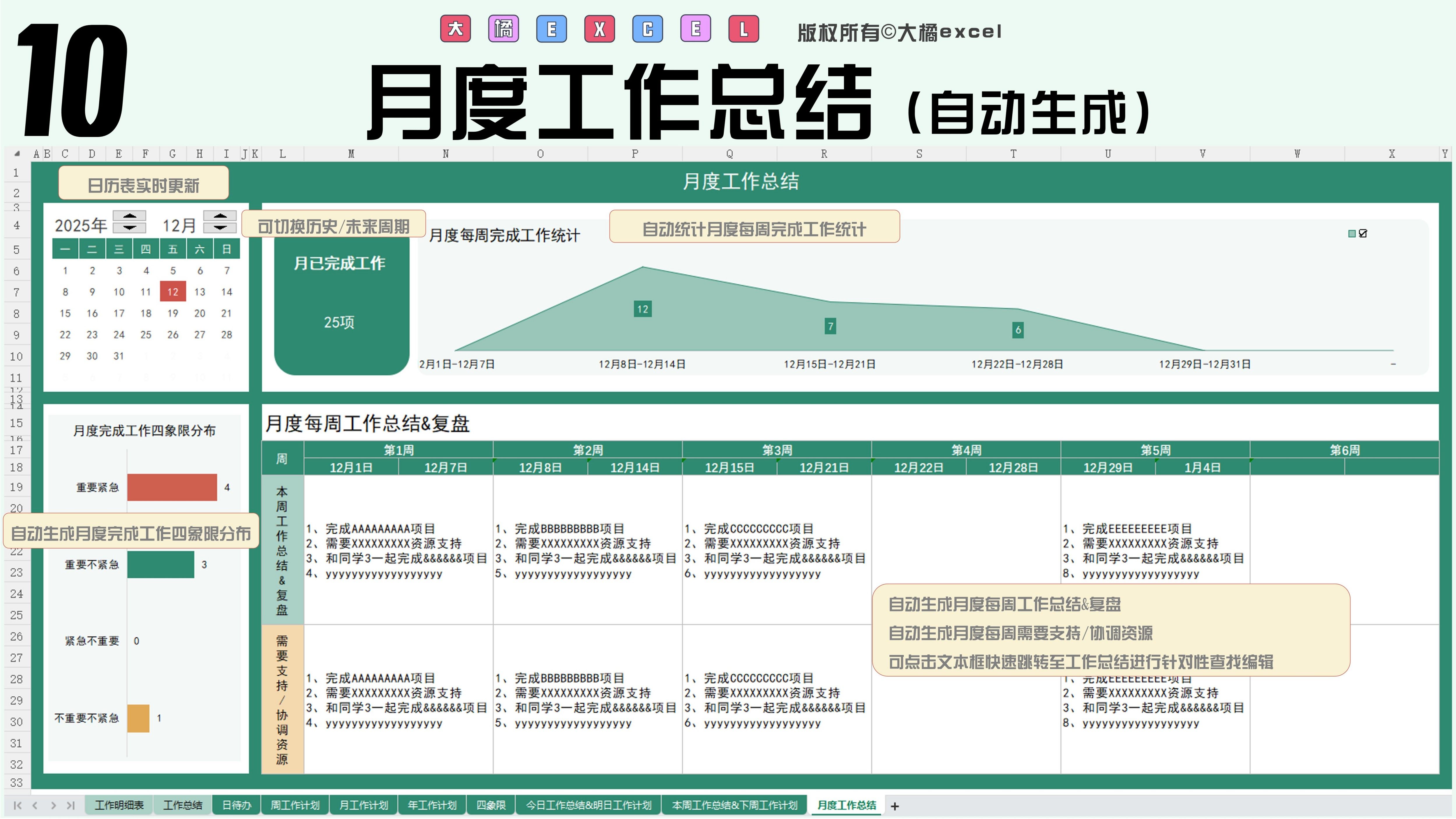 待办清单自动生成四象限/日/周/月/年计划/日周月总结