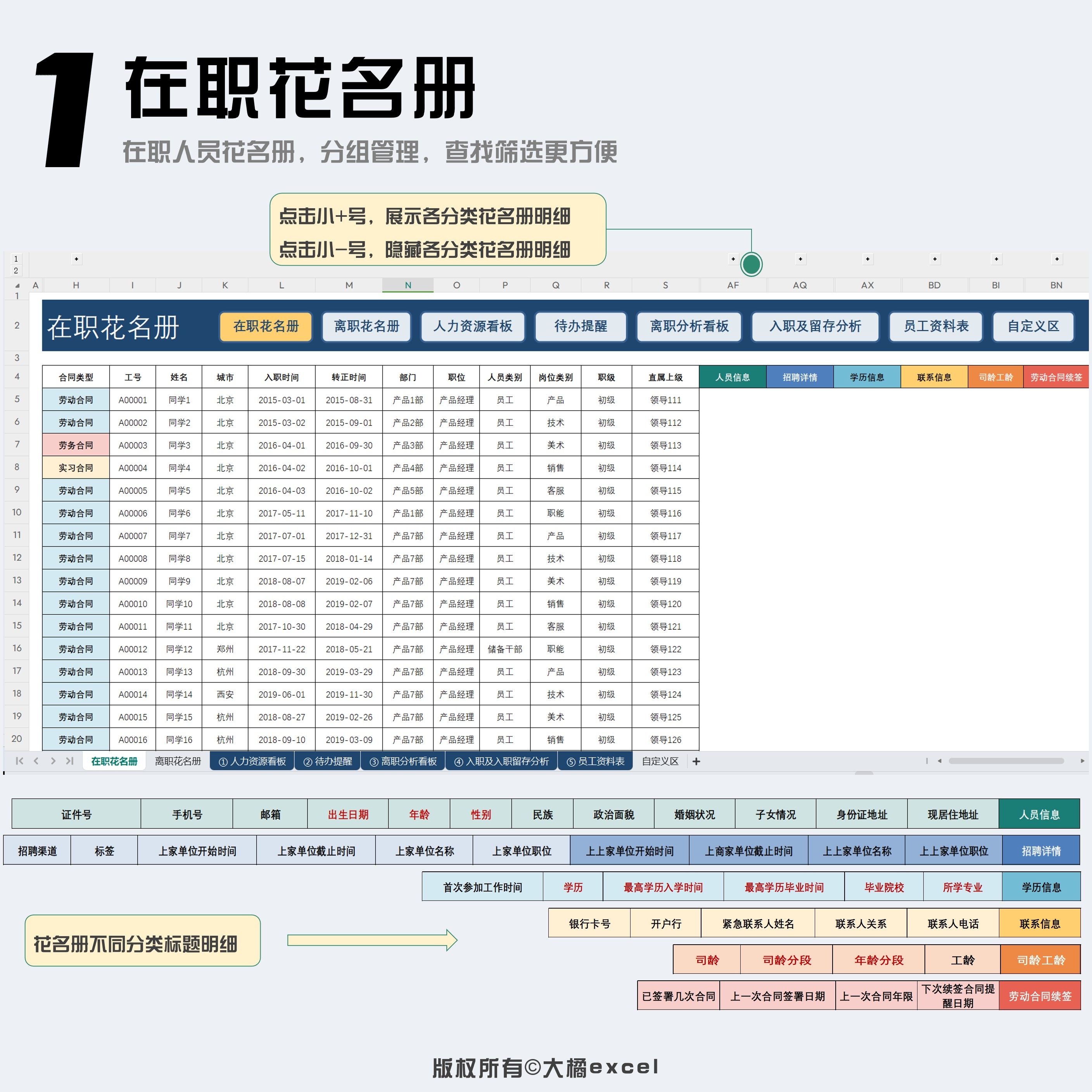 人力资源管理系统/员工信息管理/员工花名册/表格excel