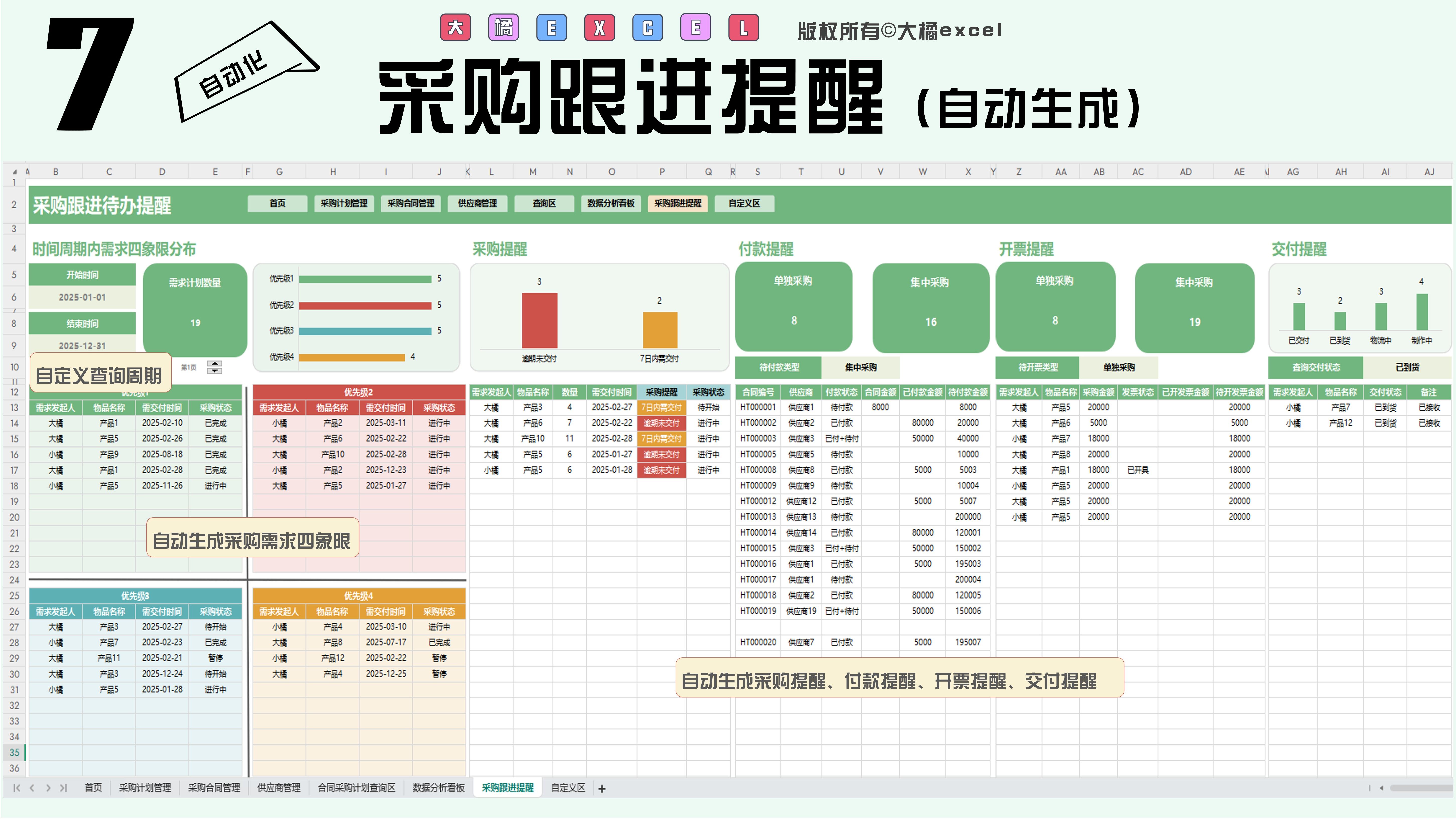项目管理甘特图Excel表格进度横道图自动化跟踪