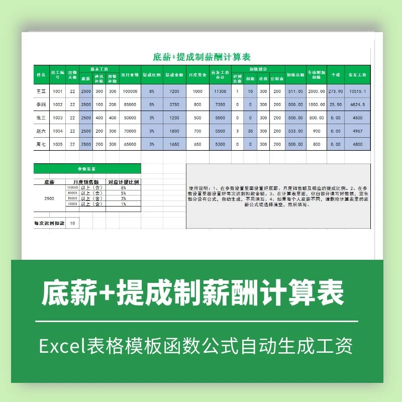 底薪业绩提成制薪酬计算表Excel表格模板函数公式自动生成工资