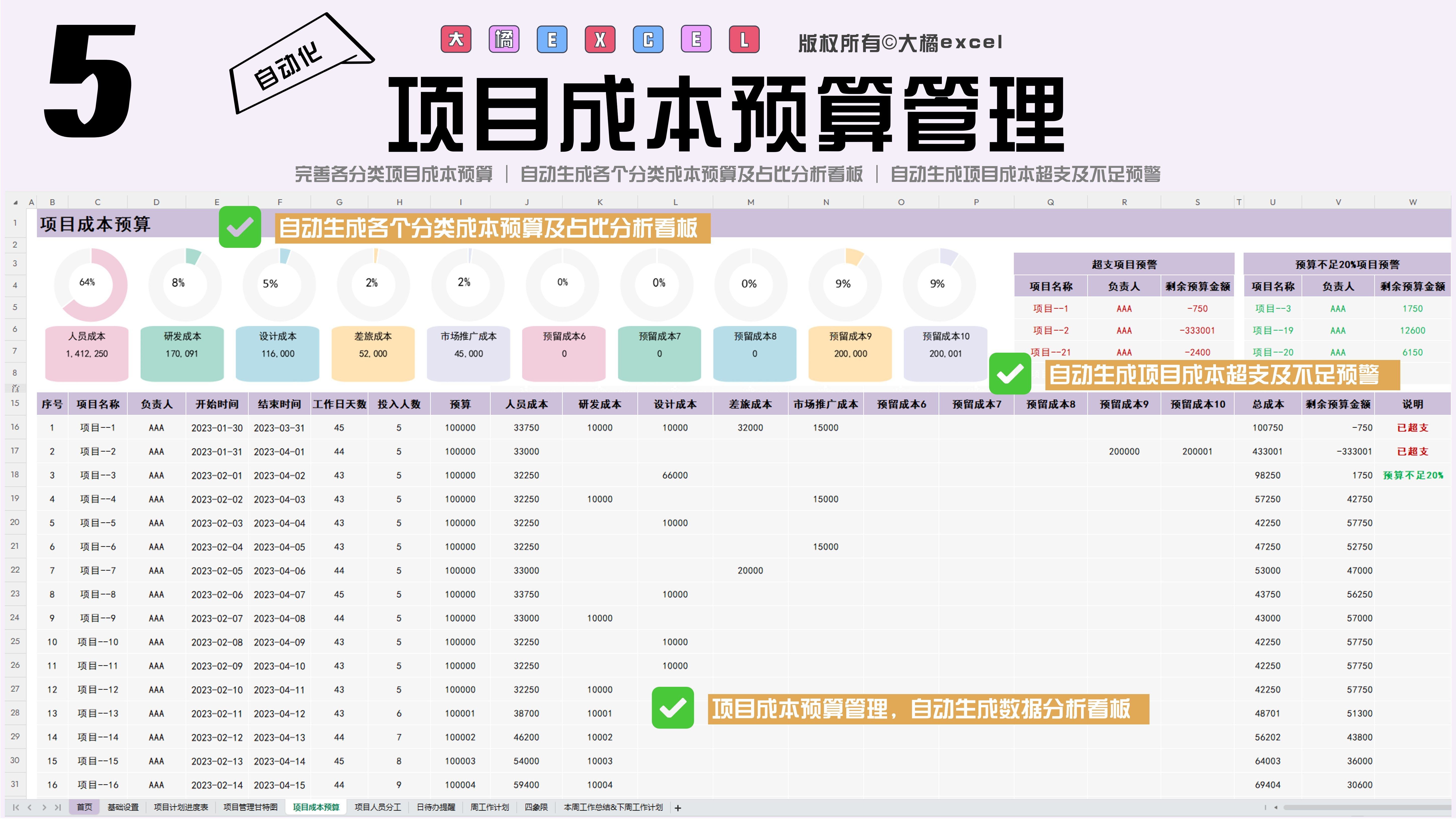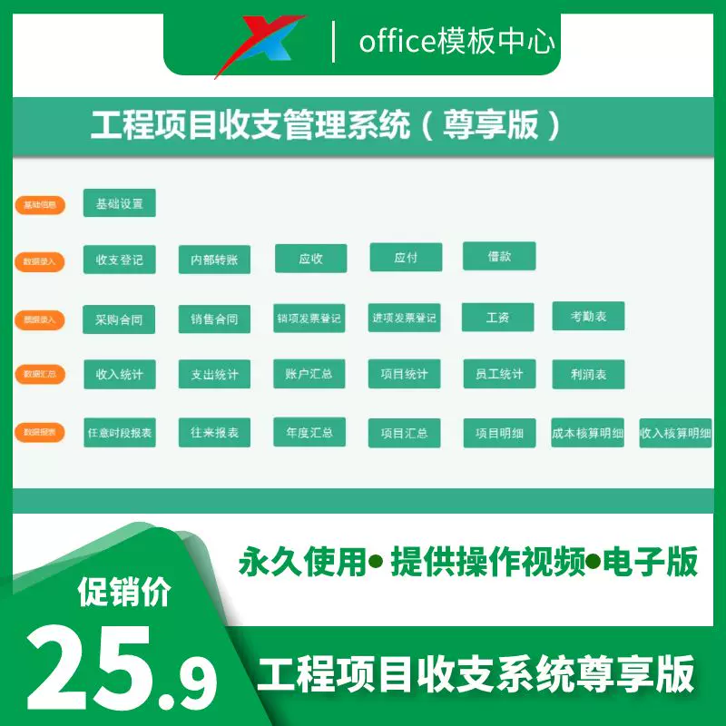 工程项目收支Excel表格工程成本核算管理系统软件