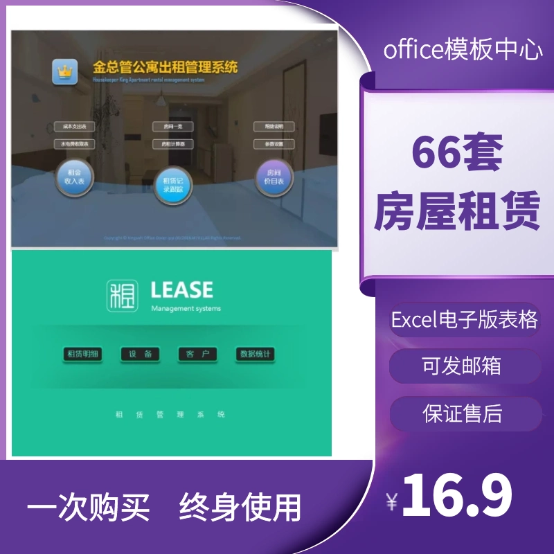 66套房东专用Excel表格房屋租赁系统租金计算统计出租水电费
