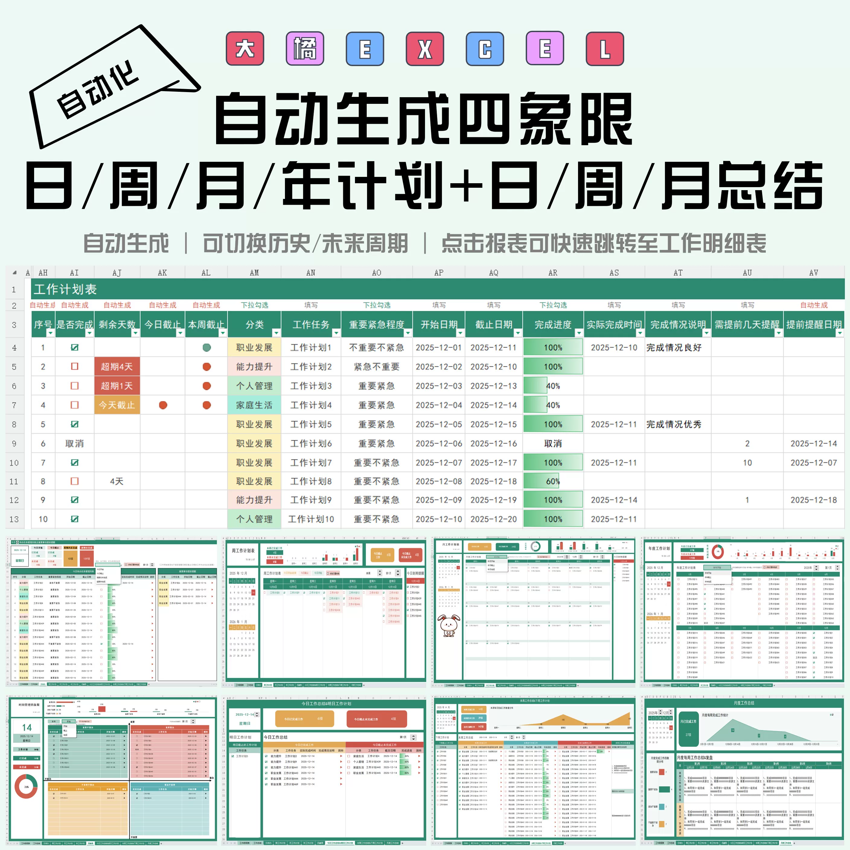 待办清单自动生成四象限/日/周/月/年计划/日周月总结