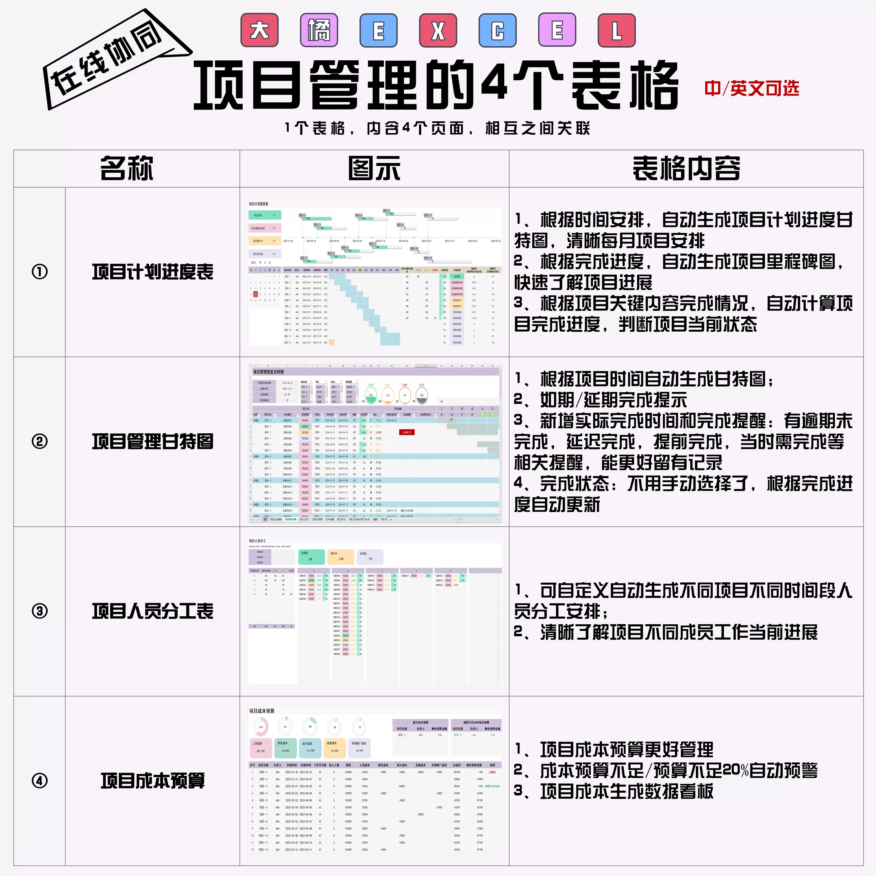 项目管理的4个表格