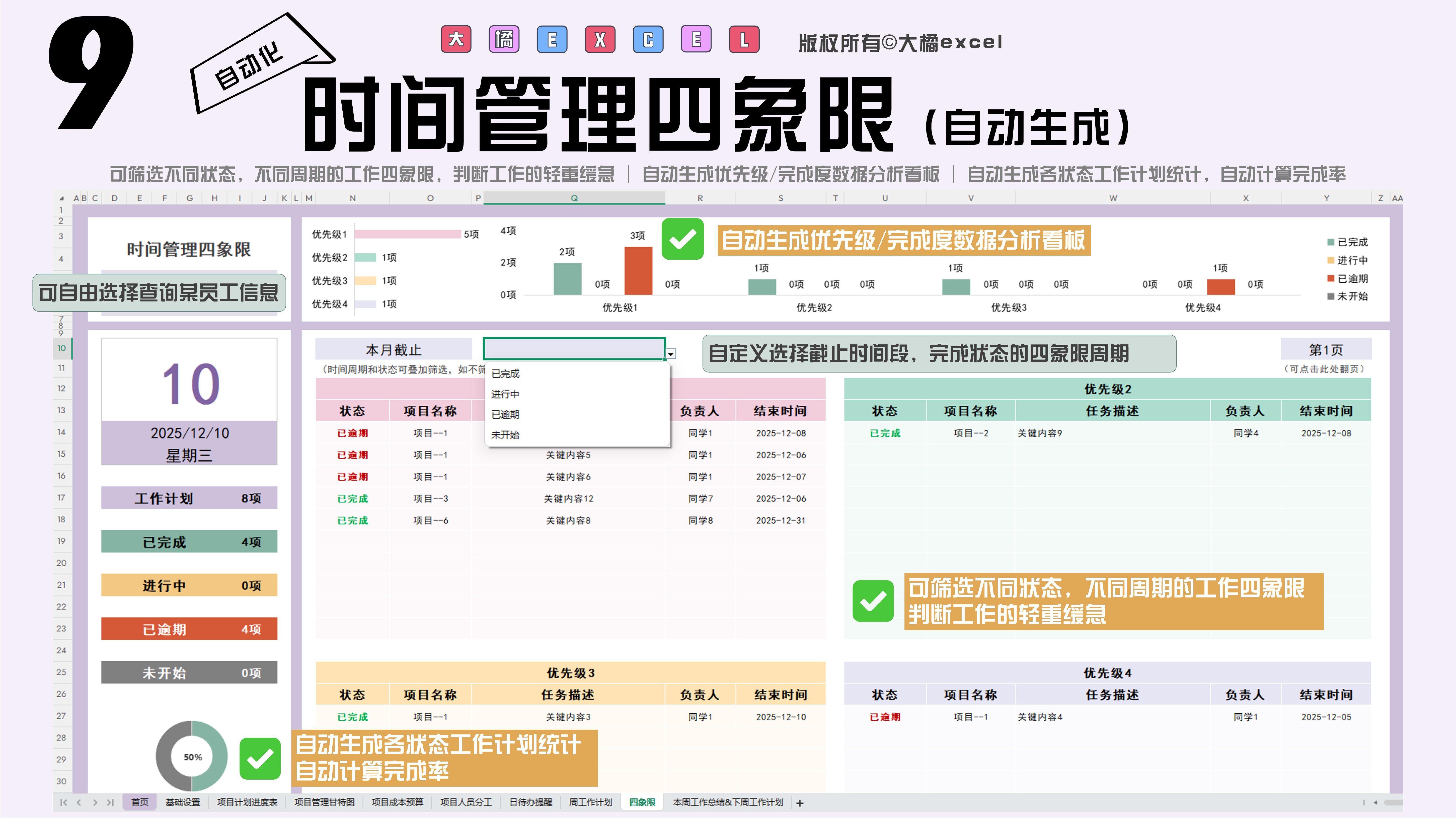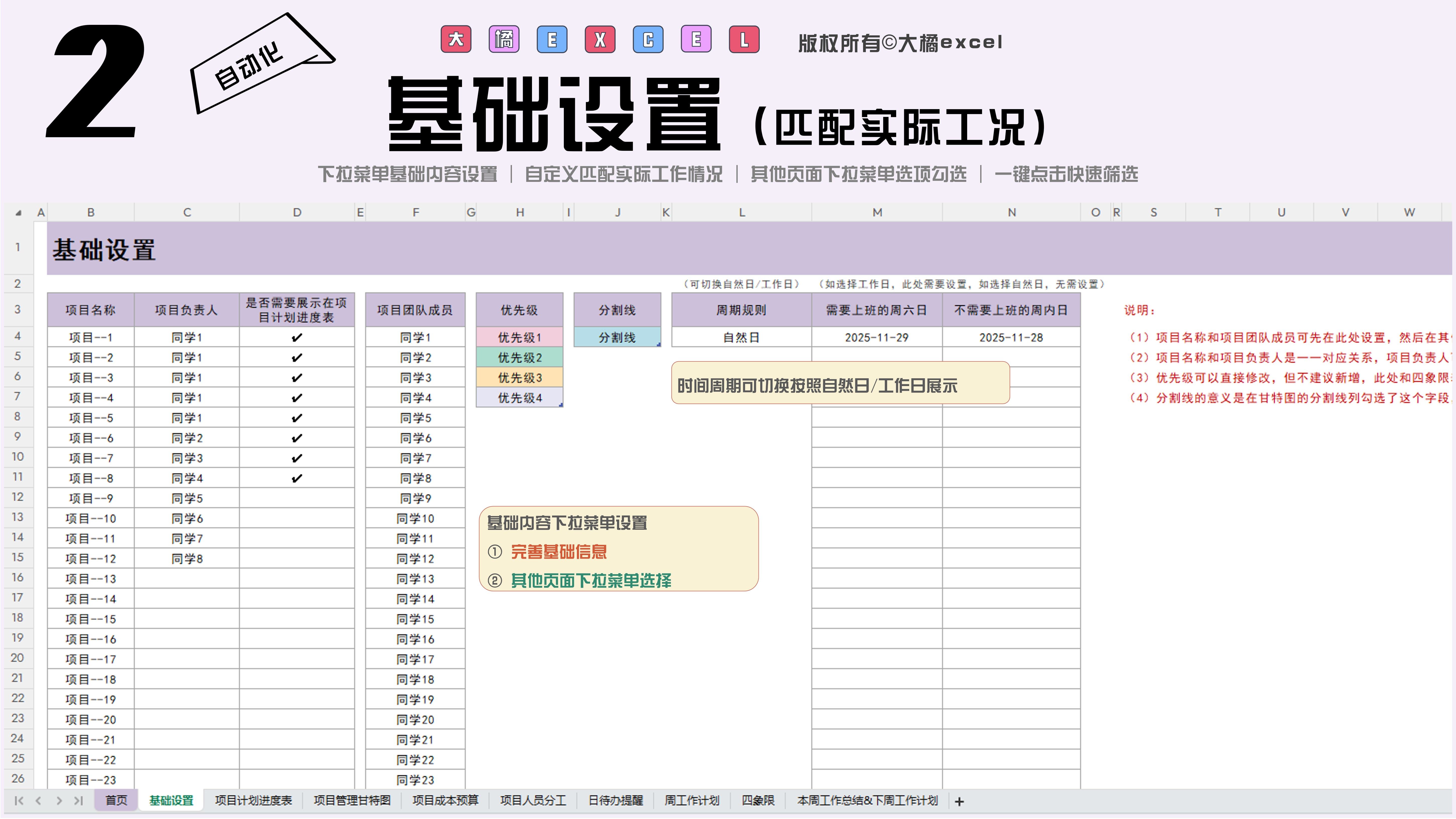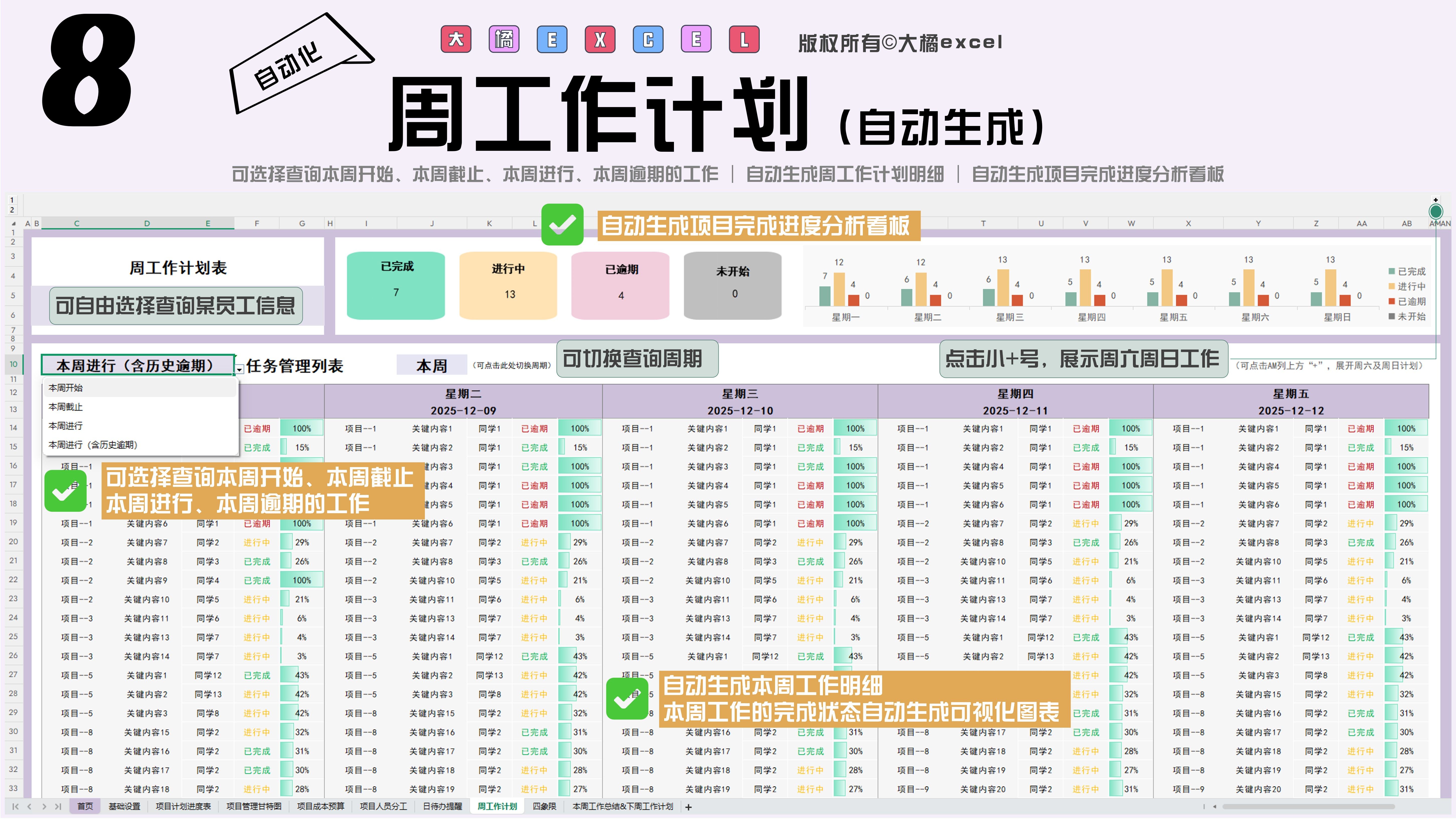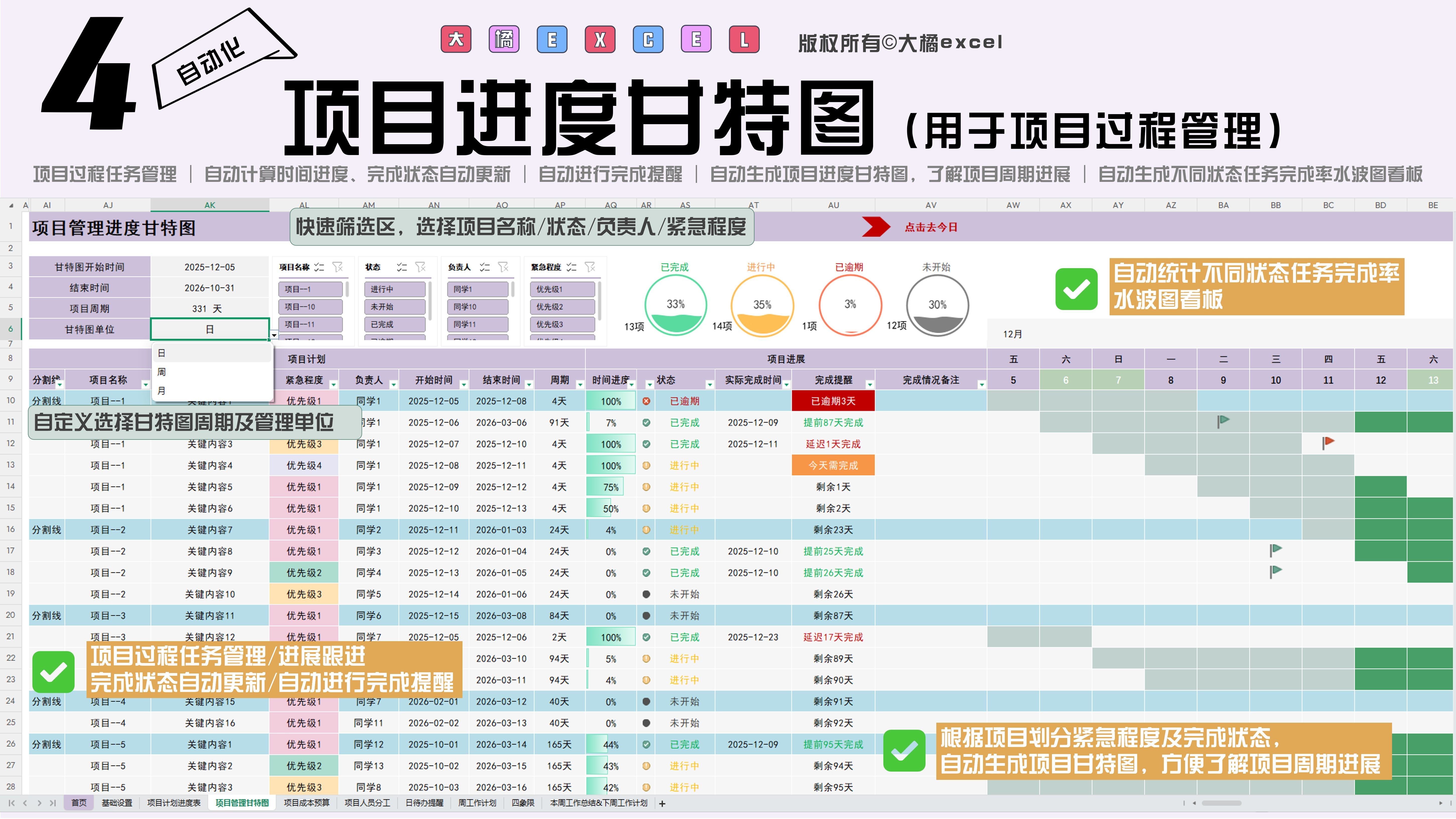 excel-项目管理进度甘特图模板(日+周+月进制版)