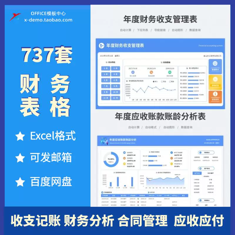 财务专用excel表格出纳收支记账财务分析应收应付账龄合同管理