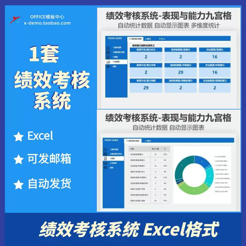 绩效考核Excel系统绩效潜力评估表现与能力九宫格自动多维度统计