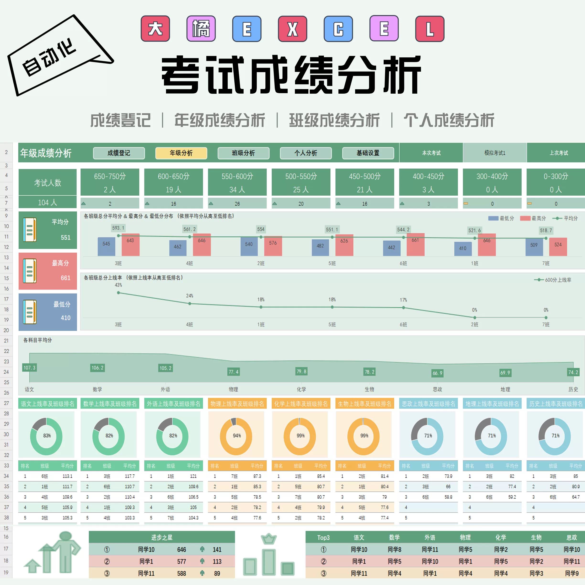 成绩表excel表格学生高中期末分析表统计系统查询测试登记表班级